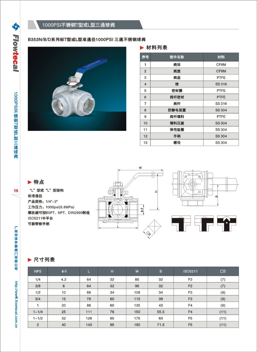 1000PSI不锈钢 T型或L型三通球阀